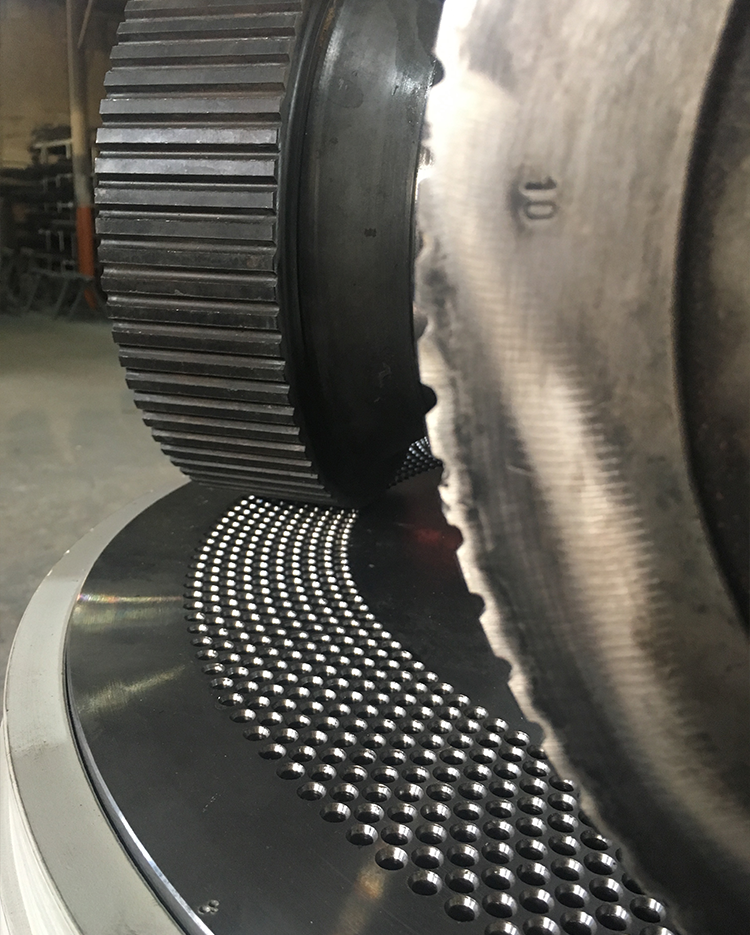 Pelet presi, ahşap atık malzemelerden pelet üretmek için kullanılan bir makinedir. Yem pelet makinelerinden farklı olarak, dikey bir mil üzerinde bulunan disk üzerinde, malzemeyi sıkıştırmak için üçlü veya dörtlü toplar belirli bir hızda döner. Peletlerin istenilen çap ve boyutlara ulaşması için disk üzerindeki deliklerin çapı ve tasarımı özel alaşımlı çelikten üretilir. Bu sayede uzun ömürlü ve dayanıklı bir pelet pres makinesi elde edilir.
