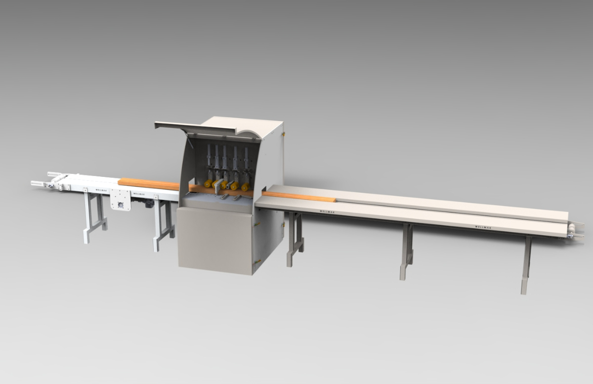 -Sistem ana motoru : Omron marka 3kw -Çıkış bant motoru : 0,75kw ve hız kontrollü -Testere çapı ve devri : 450mm -3000rpm -Makina maksimum hızı : 150m/dk(kesimsiz götürme hızı) -Ağaç malzeme kesme yüksekliği aralığı : 10mm-50mm -Ağaç malzeme kesme genişliği aralığı : 10mm-150mm -Ağaç malzeme kesme boyu : 200mm-6000mm -Çalışma basıncı : 6 bar- 8 bar -Toplam güç : 5,5kW 380/400V-50Hz -Makina ebatları : 7500mmX1400mm Yükseklik: 180mm -Malzeme kesme hassasiyeti : 1mm -Fosforlu tebeşir ile budak aralıkları işaretlenir. İşaretli yerlerden kesim yapar ve ön arka traş alır.