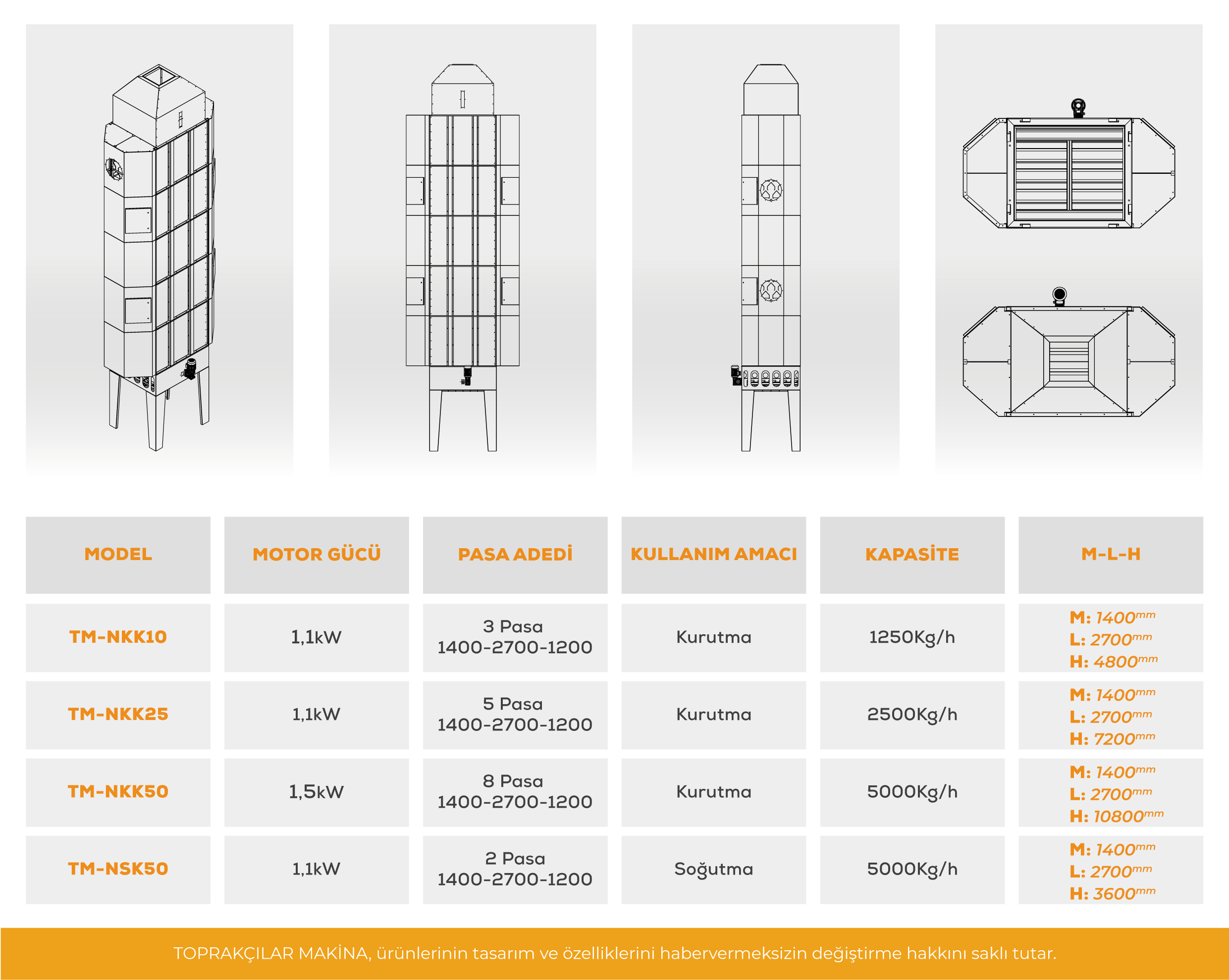 Toprakçılar Makina’nın tasarlayıp üretmiş olduğu, Kontrol Kurutma Kulesi, serpantin hava akışı sistemi ve yarı modüler tasarımıyla her tanede eşit nem dağılımı sağlar. Bu tasarım, topaklanma, küf ve mantar oluşumunu önlerken ölü noktaları en aza indirerek kurutma sürecini optimize eder. Ürün kalitesini artıran kule, bozulmayı azaltır ve uluslararası hijyen standartlarına uygun güvenli bir kurutma ortamı sunar.