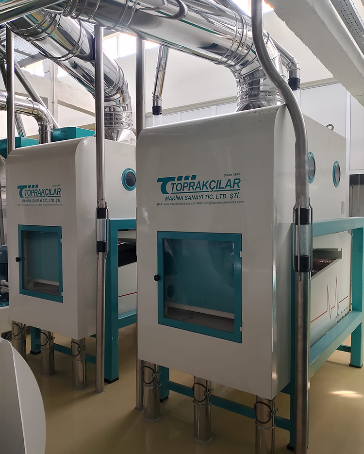 Şase altında bir vibro motor bulunur ve şase içinde, uygun boşlukta yer alan iki katlı bir elek sistemi mevcuttur. Şase gövdesi, özel titreşim emici yaylarla korunur. Makina gövdesi eğimli bir yapıya sahip olup, titreşim hareketi sayesinde ürünler makina içinde salınım yapar. Üst elekte, özgül ağırlığı yüksek olan buğday ve taş gibi ürünler kalırken, alt eleğe çöp, kağıt, saman, toprak gibi materyaller geçer ve ayrılır.